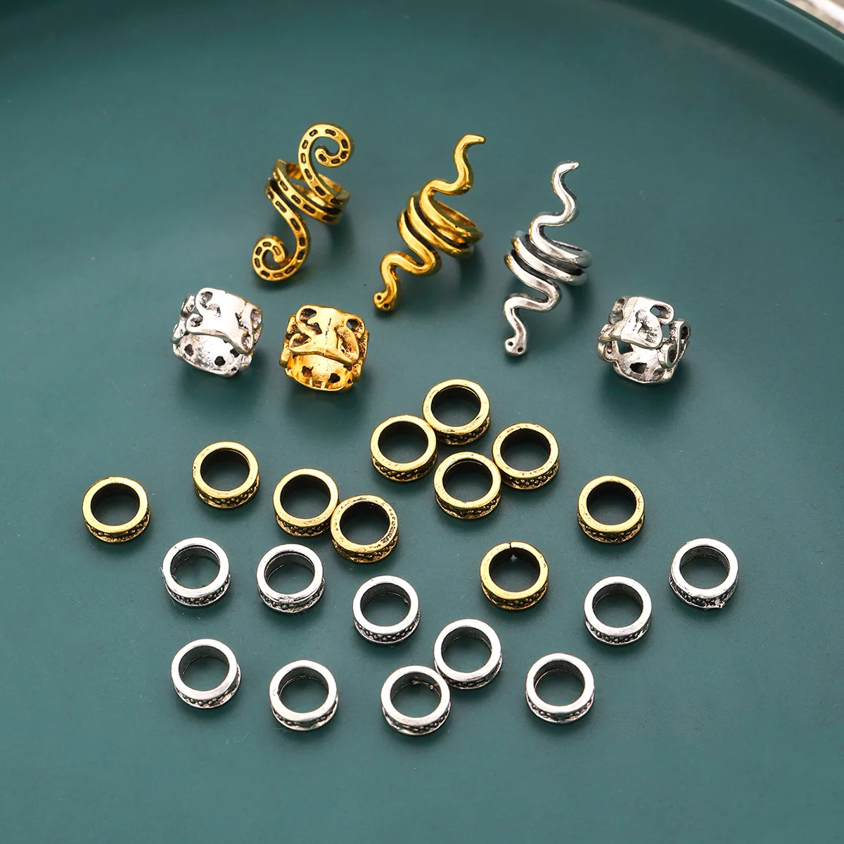 26pcs Hair Beads for Braids Mixing Different Styles Metal Beads Hair Braid Dreadlocks Hair Beads Rings Clips Styling Tools