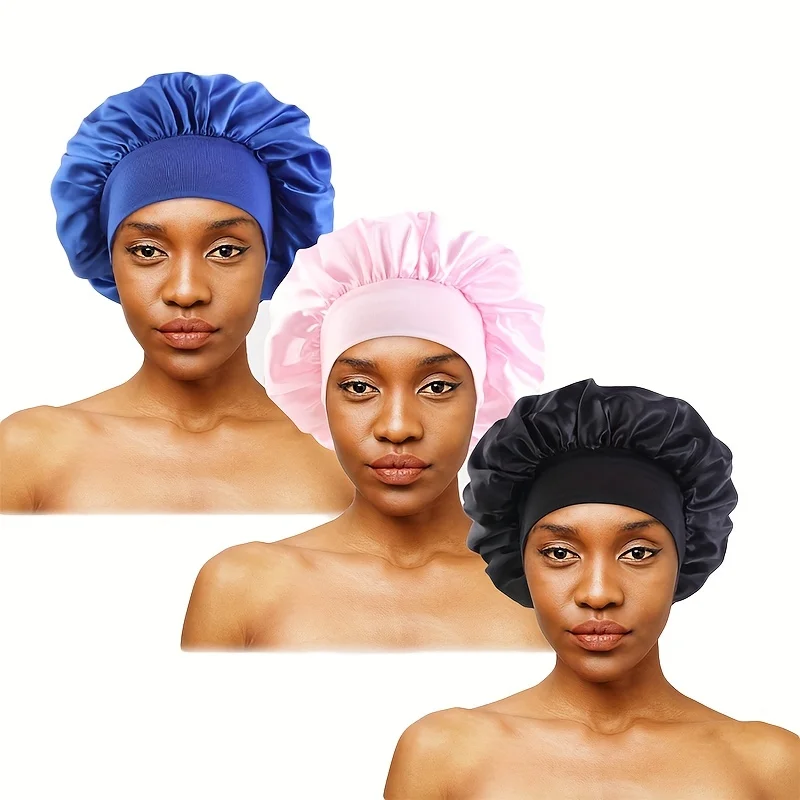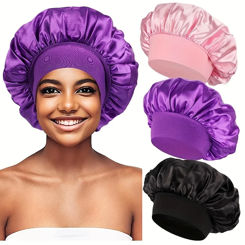4pcs/set Luxurious Satin Hair Bonnets Multipurpose Wide Elastic Turban for Beauty Sleeping & Bath Shower for Women Hair Care Cap
