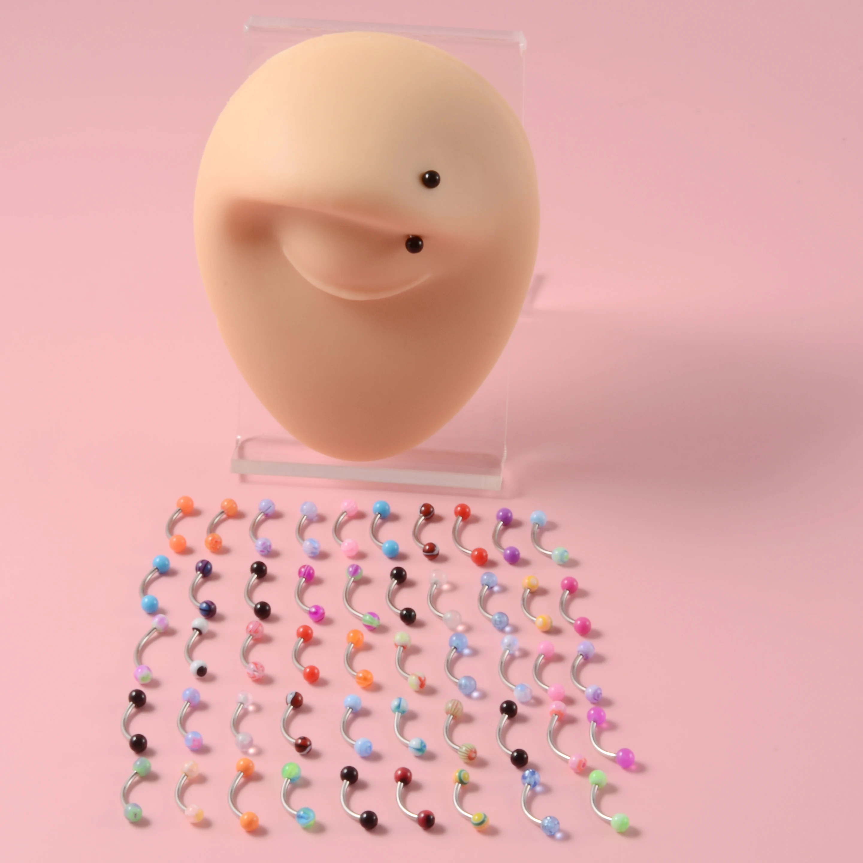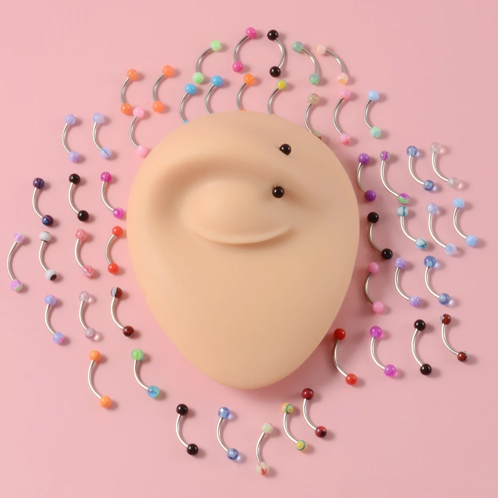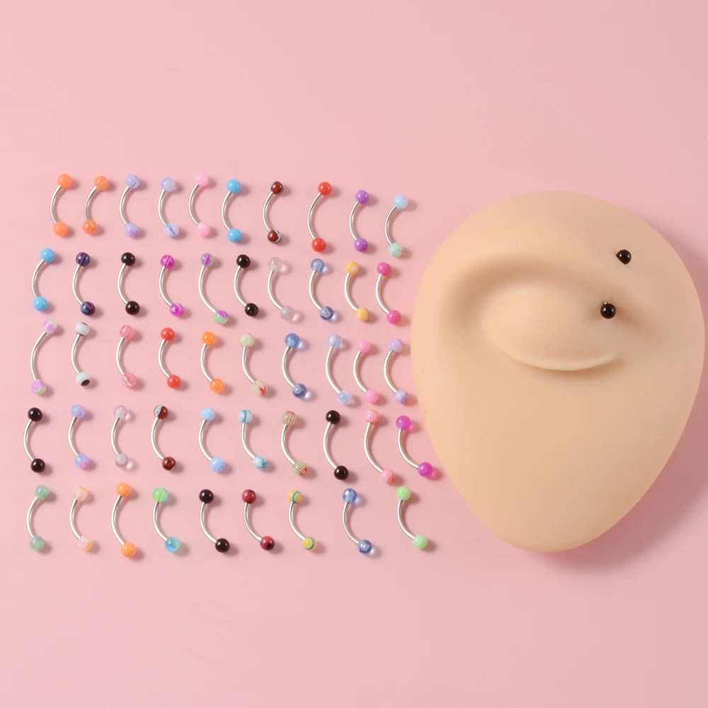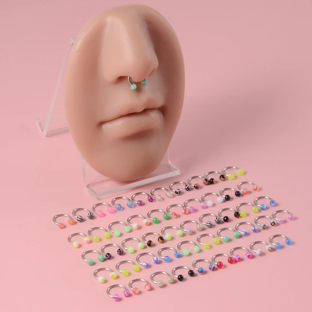 50PCS Colorful Ball Horseshoe Nose Ring Septum Eyebrow Nose Piercing Jewelry Steel Acrylic Nose Lip Ear Daith Helix Earring
