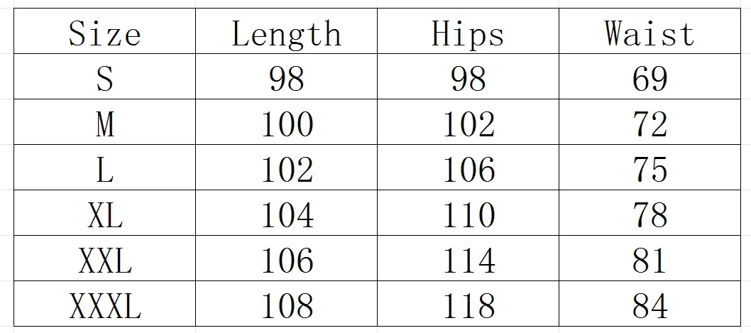 size_info: {"sizeInfoList":[{"length":{"cm":"98","inch":"38.58"},"size":"S","vid":-1},{"length":{"cm":"100","inch":"39.37"},"size":"M","vid":-2},{"length":{"cm":"102","inch":"40.16"},"size":"L","vid":-3},{"length":{"cm":"104","inch":"40.94"},"size":"XL","vid":-4},{"length":{"cm":"106","inch":"41.73"},"size":"XXL","vid":-5},{"length":{"cm":"108","inch":"42.52"},"size":"XXXL","vid":-6}]}